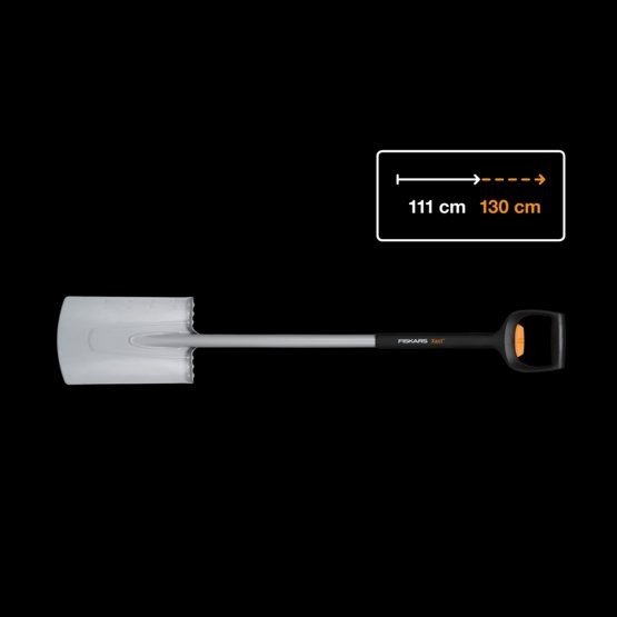 Sodininkystė yra daug pastangų reikalaujantis užsiėmimas, o Fiskars Xact™ įrankiai pasižymi tikslinėmis naujovėmis ir puikiai tinka darbams greičiau atlikti, todėl galite daryti daugiau tai, ką mėgstate. Xact™ teleskopinis tiesus kastuvas yra reguliuojamo ilgio, kad puikiai tiktų. Boro plieno darbinė plokštė tvirtai privirinta prie tvirto teleskopinio kompozito ir plieno koto, pailginamo nuo 110,8 cm iki 130 cm. Ypač tvirtas, tiesus kastuvas su neslystančia platforma kojai, aštrinta briauna ir šonais, todėl puikiai tinka formuoti kraštą ir sodinti normaliame, žole apaugusiame viršutiniame dirvos sluoksnyje. SoftGrip™ medžiaga padengta stumti ir traukti skirta D formos rankena leidžia kasti užtikrintai. Fiskars Xact™ įrankiai dirba kartu su jūsų kūnu, derinant tinkamą ilgį su lengvomis, tačiau labai patvariomis medžiagomis.